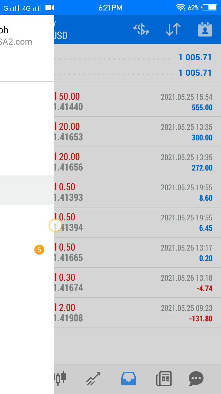 live trading tetapi apabila sudah mula kerugian, hati mula goyah dan